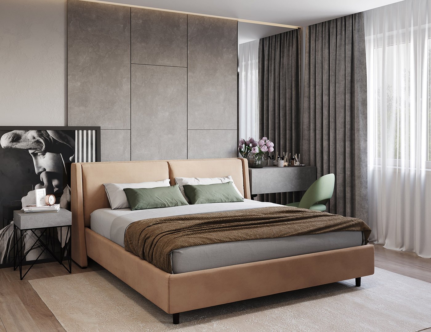 8703/ESt Rockstone - a gray relief with light streaks makes up a natural decor inspired by stone cliffs with their grandeur and picturesque appearance. The decorative coating brings the coolness and mystery of mountain peaks to the interior.